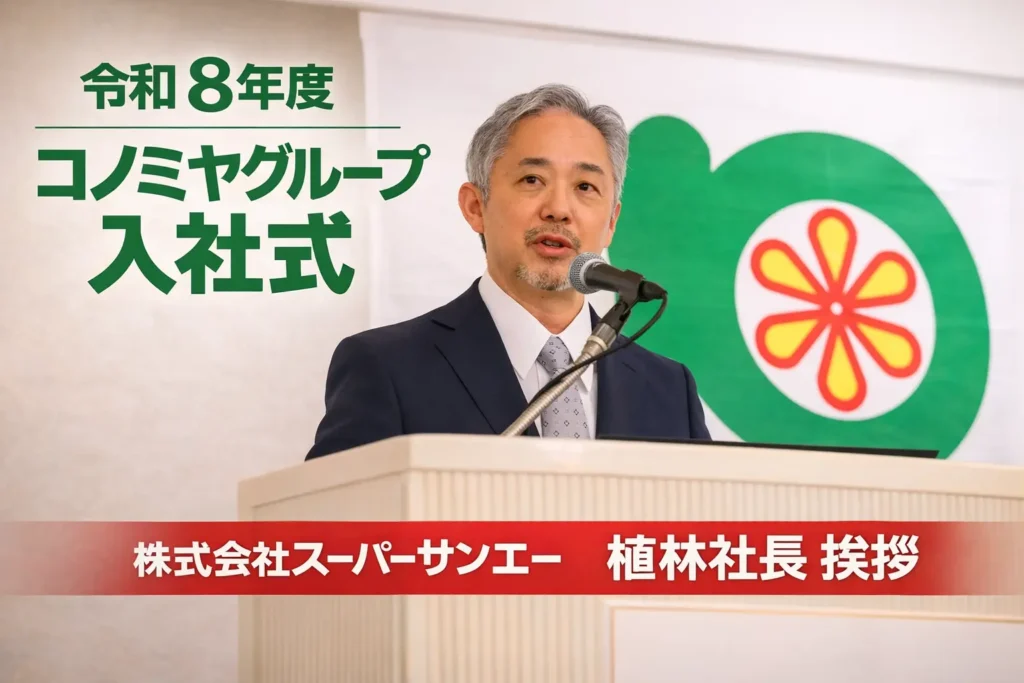 コノミヤグループ入社式2026 株式会社スーパーサンエー 植林社長 挨拶